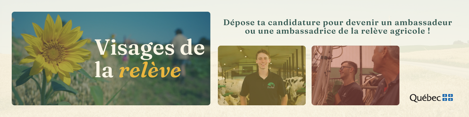 Tu es fier de ton entreprise ? Tu as une histoire inspirante ? Tu aimerais valoriser ta profession ? Deviens ambassadeur de la relève agricole dans notre prochaine vague de Visages de la relève !